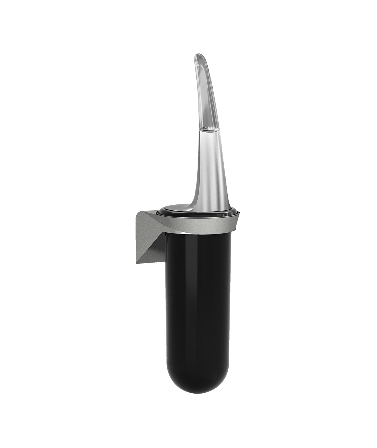 Wall mounted toilet brush holder, includes mounting kit to be mounted on the wall thus facilitating cleaning operations. Mar Plast design and functionality guaranteed. The Skin line is made from pre- and post-consumer recycled plastic.